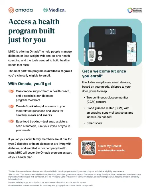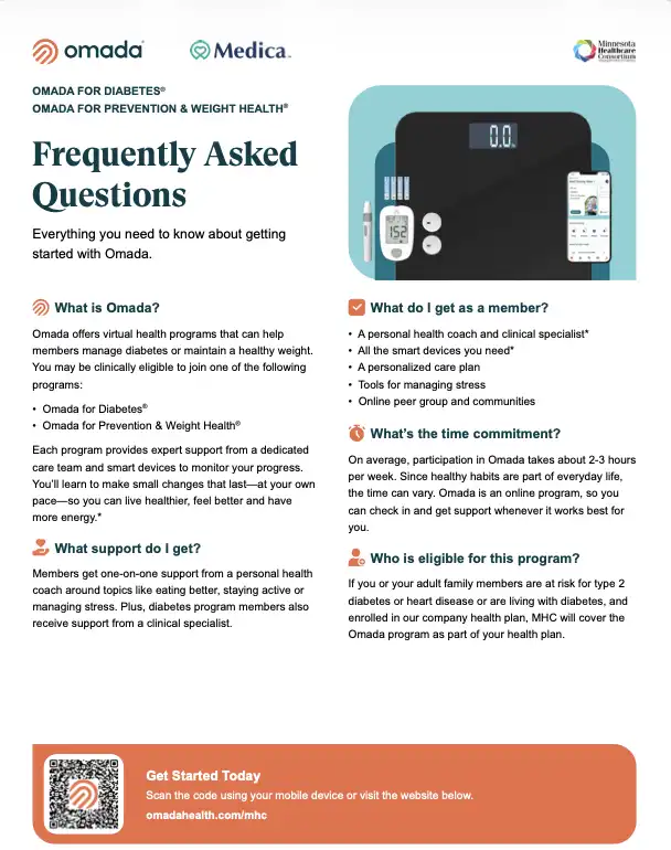 If you or your adult family members are at risk for type 2 diabetes and are enrolled in the SCSC/MHC health plan, the cost of the Omada program is covered.